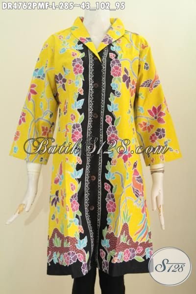 Dress Batik Warna Kuning Motif Bunga Proses Kombinasi Tulis, Busana Batik Fashion Wanita Muda Dan Dewasa Untuk Penampilan Makin Istimewa, Berbahan Halus Proses Kombinasi Tulis Kwalitas Premium [DR4762PMF-L]