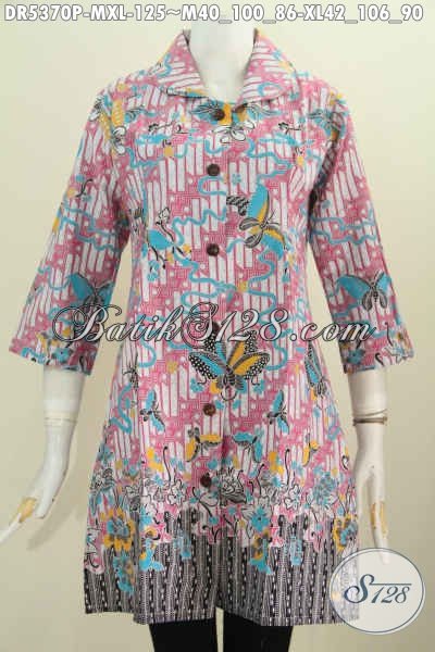 Dress Batik Warna Pink, Baju Batik Elegan Dan Modis Model Kerah Bulat Proses Printing Hanya 125 Ribu [DR5370P-M , XL]