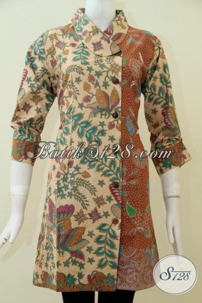 Dress Cantik Dan Keren Asli Produk Solo Jawa Tengah, Baju Batik Formal motif Klasik Modern Kesukaan Wanita Karir Sejati [DR1753PL-M]