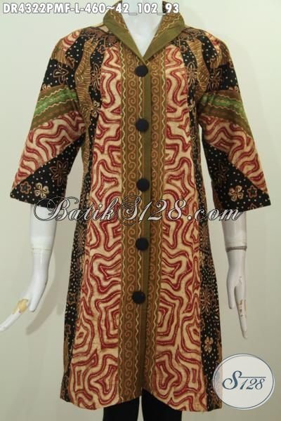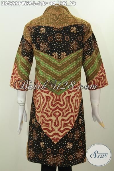 Dress Istimewa Buatan Solo Berbahan Batik Kwalitas Bagus Motif Klasik Kombinasi Tulis, Baju Kerja Berkelas Daleman Full Furing Warna Mewah Penapilan Makin Anggun Mempesona [DR4322PMF-L]
