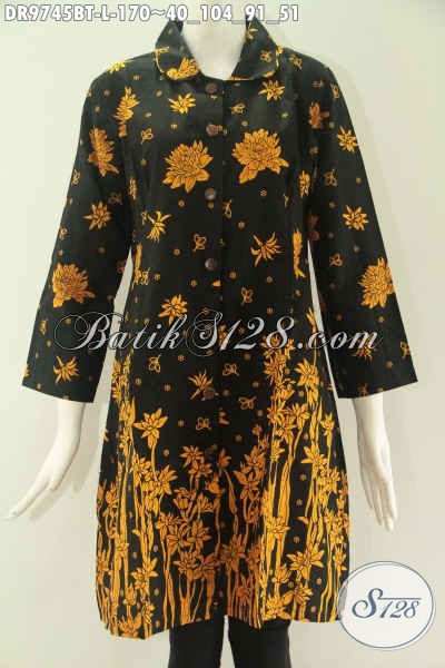 Model : Dress Batik Kerah, Kancing Depan Sampai Bawah, Lengan 7/8