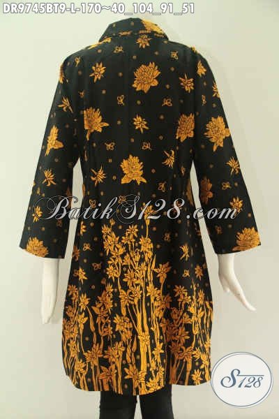 Dress Kerah Dengan Kancing Depan Sampai Bawah Lengan 7/8, Berbahan Halus Motif Terkini Jenis Kombinasi Tulis Cocok Untuk Kerja Maupun Acara Resmi [DR9745BT-L]