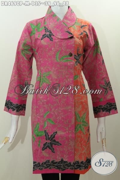 Dress Kerah Miring Dua Dengan Warna Kombinasi, Pakaian Batik Elegan Dan Mewah Motif Terkini Proses Printing Yang Membuat Wanita Terlihat Istimewa [DR4690P-M]