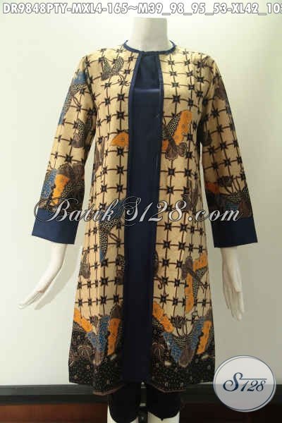 Dress Wanita Kombinasi Bahan Batik Dengan Kain Polos Toyobo Kwalitas Halus Nyaman Di Pakai, Model Pias Pakai Resleting Belakang [DR9848PTY-M , XL]