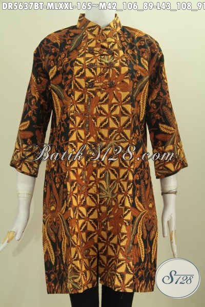 Drss Batik Elegan Dan Berkelas, Baju Batik Kancing Zig-Zag Model Kerah Shanghai Bahan Adem Proses Kombinasi Tulis [DR5637BT-M , L , XXL]