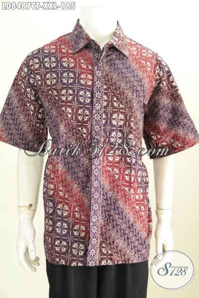 Foto Baju Batik Pria Model 2017, Hem Batik Keren Halus Lengan Pendek Motif Cap Tulis Asli Buatan Solo Harga Terjangkau [LD8487CT-XXL]