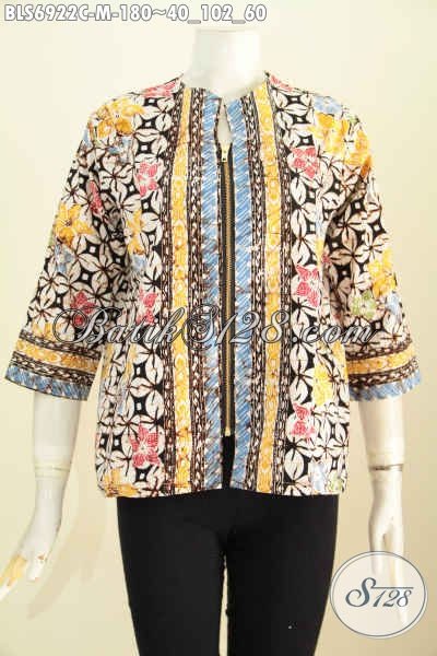 Foto Baju Batik Untuk Wanita, Desain Blus Modern Kantong Paspol Kanan Kiri Dengan Resleting Depan Motif Cap Buatan Solo, Cocok Untuk Hangout [BLS6922C-M]