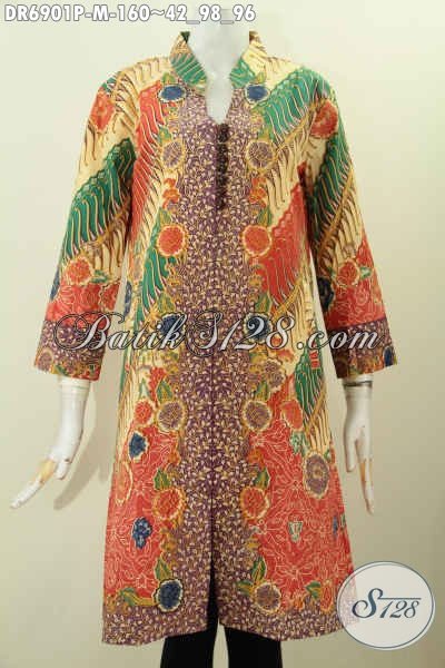 Foto Baju Batik Untuk Wanita Yang Ingin Tampil Beda, Dress Batik Elegan Dan Mewah Motif Bagus Proses Printing Pake kancing Banyak Hanya 160K [DR6901P-M]