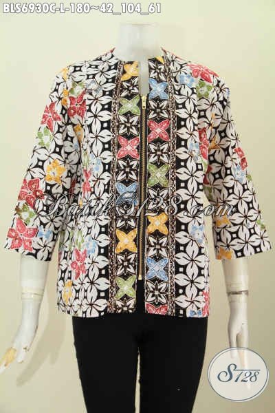 Foto Model Baju Batik Atasan Wanita Buatan Solo, Blus Resleting Depan Motif Keren Proses Cap, Bikin Wanita Terlihat Cantik Dan Stylish [BLS6930C-L]