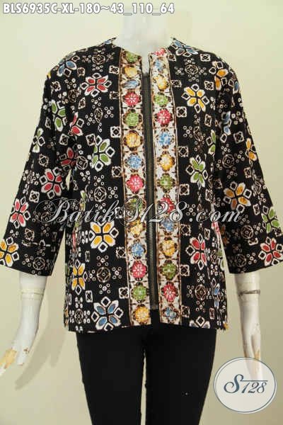 Gambar Baju Batik Atasan Wanita Terbaru, Hadir Dengan Desain Keren Resleting Depan Berpadu Kantong Paspol Kanan Kiri Kwalitas Bagus Harga 180 Ribu [BLS6935C-XL]