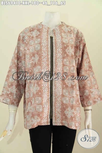 Gambar Baju Batik Wanita Atasan Ukuran 3L, Blus Batik Keren Desain Kantong Paspol Kanan Kiri Dan Resleting Depan, Cocok Untuk Hangout [BLS6941C-XXL]