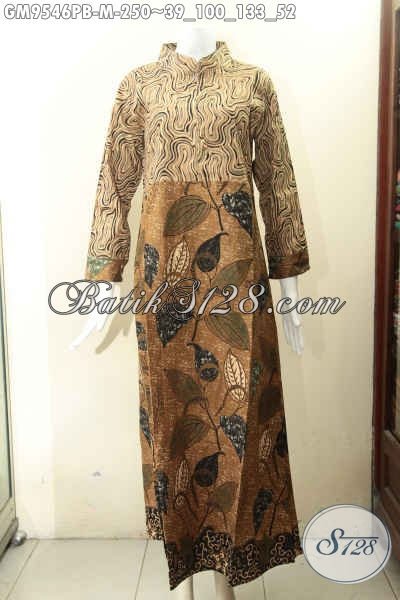 Gamis Batik 2 Motif Desain Mewah Pakai Resleting Depan Kwalitas Istimewa, Busana Batik Syar’i Wanita Masa Kini Untuk Tampil Berkelas, Lengan Panjang Pakai Manset Kancing [GM9546PB-M]