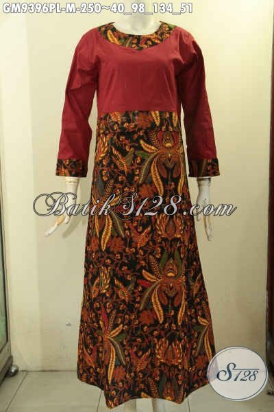 Gamis Batik Buatan Solo Kombinasi Kain Polos Nan Trendy, Abaya Batik Istimewa Bahan Halus Desain Berkelas Dengan Resleting Belakang Lengan Ada Manset Dan Kancing Untuk Penampilan Cantik Syar’i [GM9396PL-M]