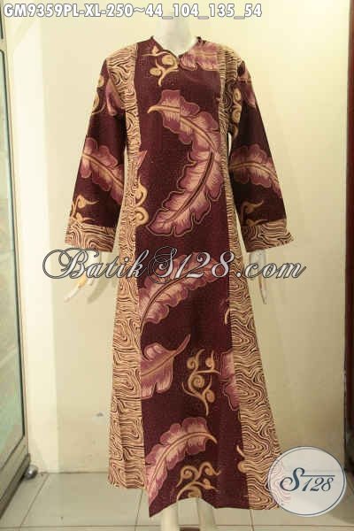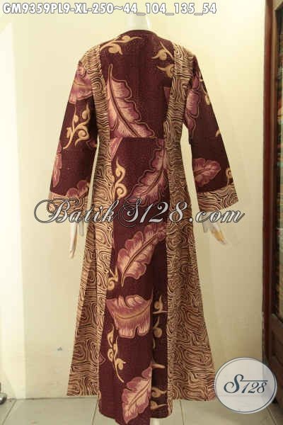 Gamis Batik Dual Motif Dengan Resleting Depan Bahan Halus Motif Bagus Dan Terbaru Jenis Printing, Tampil Anggun Dan Gaya [GM9359PL-XL]