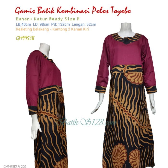 Gamis Batik Kombinasi Polos Wanita Modern [GM9951BT-M]