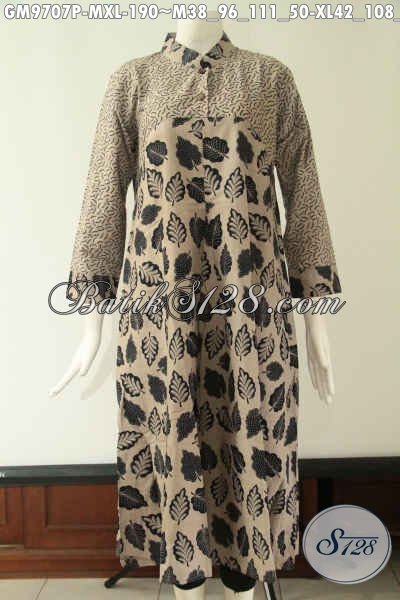 Gamis Batik Krah Shanghai Lengan Panjang Di Lengkapi Kancing Bathok Sampai Dada, Busana Wanita Muslimah Motif Tren Masa Kini Bahan Halus Yang Nyaman Di Pakai [GM9707P-M]