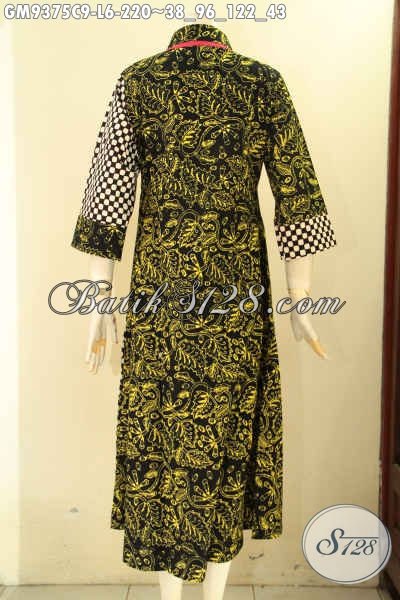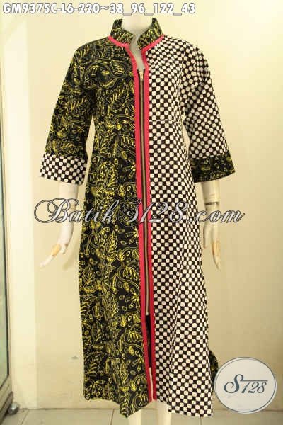 Gamis Batik Model Resleting Depan Nan Elegan Dan Berkelas, Abaya Batik Kekinian Motif Bagus Jenis Cap Bahan Halus Nyaman Di Pakai Harian [GM9375C-L]