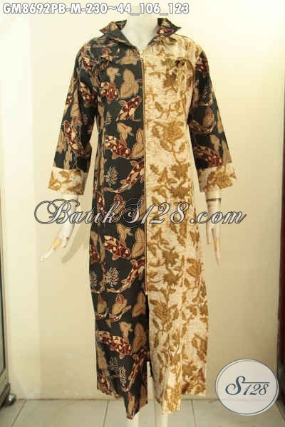 Gamis Batik Motif Kombinasi, Busana Batik Muslim Wanita Berhijab Bahan Adem Desain Resleting Depan Kwalitas Istimewa, Tampil Cantik Mempesona [GM8692PB-M]