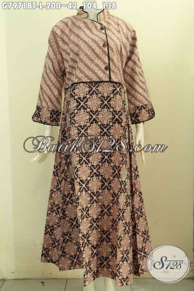 Gamis Batik Plisir Polos Dengan Resleting Belakang, Pakaian Batik Wanita Muslim Bahan Adem Motif Klasik Kombinasi Tulis, Di Jual Online 200K [G7971BT-L]