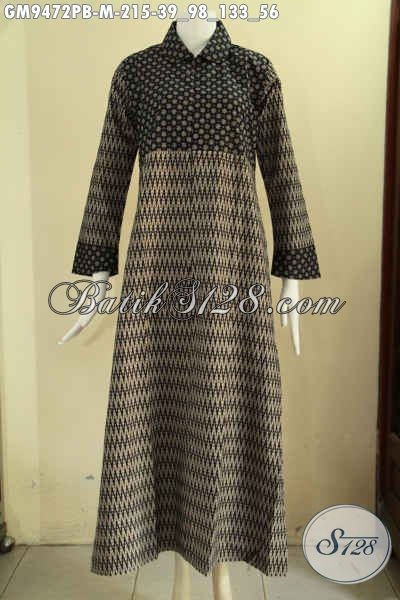 Gamis Batik Resleting Depan Kerah Bulat 2 Motif, Abaya Batik Wanita Berhijab Desain Mewah Kwalitas Bagus Harga Terjangkau [GM9472PB-M]