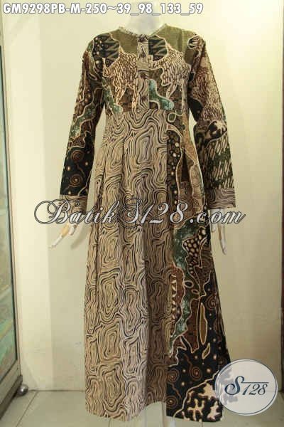 Gamis Batik Solo Elegan Lengan Panjang, Pakaian Batik Perempuan Berhijab Untuk Tampil Cantik Dan Syar’i Bahan Halus Padua 2 Motif Elegan Jenis Printing Hanya 200 Ribuan [GM9298PB-M]