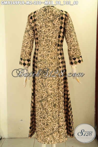 Gamis Batik Solo Nan Mewah Dan Elegan, Hadir Dengan Model Resleting Depan Kombinasi 2 Motif Nan Berkelas Jenis Printing Hanya 200 Ribuan Saja [GM9349PL-M]