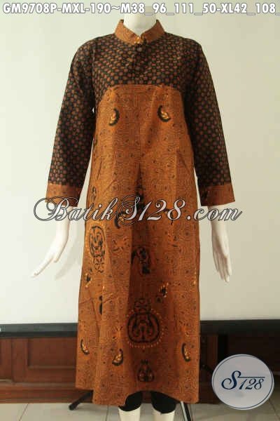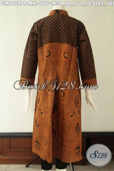 Gamis Batik Solo Tren Masa Kini Yang Banyak Di Sukai Wanita Muda Dan Dewasa, Hadir Dengan Model Lengan Panjang Krah Shanghai Halus Motif Baru Pakai Kancing Bathok Sampai Dada [GM9708P-XL]