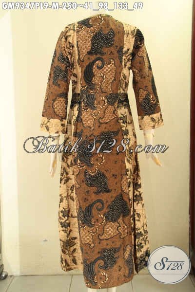 Gamis Batik Syar’i Wanita Muda Kombinasi 2 Motif, Abaya Batik Buatan Solo Pakai Resleting Depan Bahan Halus Yang Nyaman Di Pakai [GM9347PL-M]