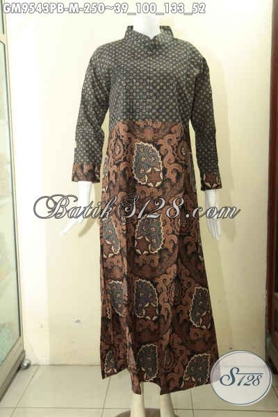 Gamis Batik Wanita Muslimah Terbaru, Hadir Dengan Paduan 2 Motif Desain Resleting Depan Dan Lengan Panjang Yang Di Lengkapi Manset Kancing, Tampil Cantik Dan Syar’i [GM9543PB-M]