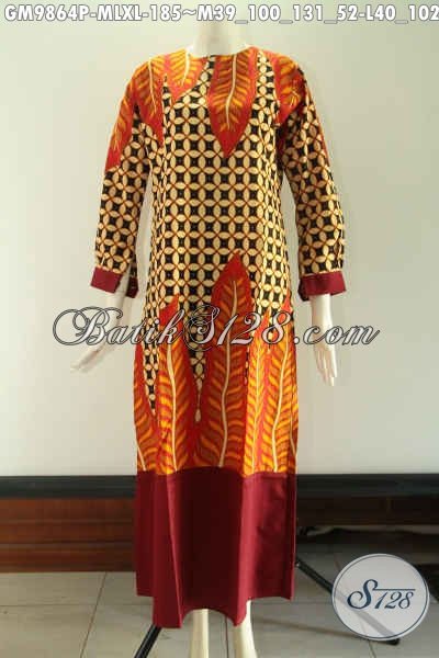 Gamis Batik Wanita Terbaru Hadir Dengan Desain Trendy Kombinasi Kain Polos Di Bagian Bawah, Berbahan Halus Berpadu Motif Elegan Kekinian Yang Menunjang Penampilan Terlihat Anggun Berkelas [GM9864P-M , L , XL]
