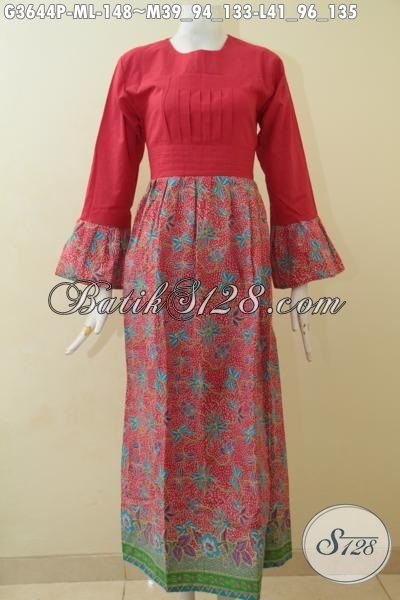 Gamis Batik Warna Merah Dengan Bawahan Bermotif Trendy Nan Mewah, Abaya Batik Model Terbaru Proses Printing Wanita Muslim Tampil Makin Modis [G3644P-M , L]