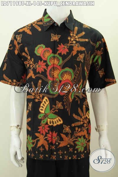 Hem Baju Batik Lengan Pendek Motif Kupu Dan Burung Cendrawasih, Baju Batik Spesial Untuk Pria Tampil Gaya Dan Gagah [LD7119BT-XL]