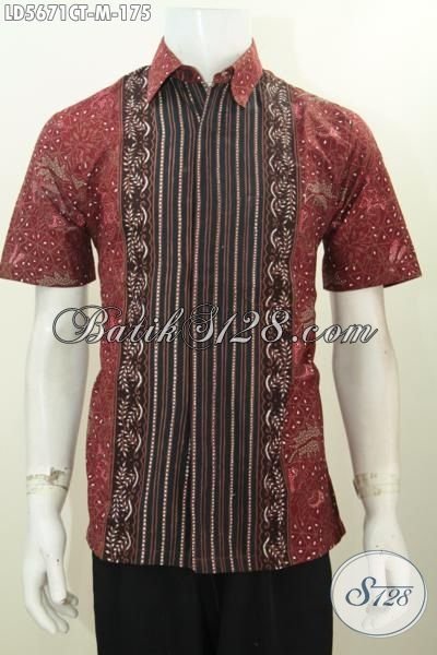 Hem Baju Batik Modis Keren Motif Modern Proses Cap Tulis, Pakaian Batik Cowok Size M Lengan Pendek Modis Buat Acara Santai [LD5671CT-M]