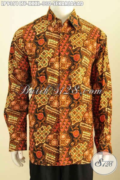 Hem Batik 4L Lengan Panjang, Busana Batik Big Size Full Furing Motif Sekarjagad Bahan Halus Proses Cap Tulis Harga 330K Untuk Lelaki Gemuk Sekali [LP9351CTF-XXXL]