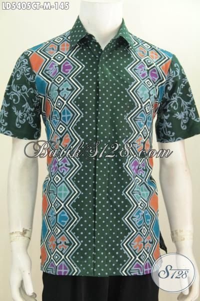 Hem Batik Cap Tulis Motif Modern Yang Keren Banget, Baju Kemeja Batik Dasar Hijau Kwalitas Bagus Yang Mampu Bikin Penampilan Cowok Lebih Keren [LD5405CT-M]