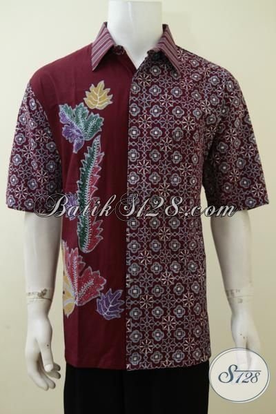 Hem Batik Cap Tulis Ukuran Besar Untuk Pria Dewasa, Pakaian Batik Warna Merah Mewah Penunjang Penampilan Cowok Karir Aktif [LD3241CT-XL]