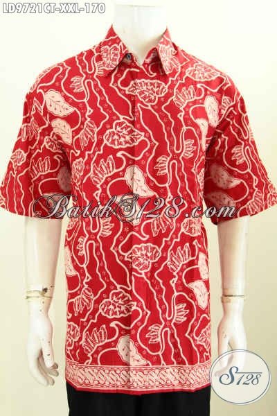 Hem Batik Cap Tulis Warna Merah, Baju Batik Solo Elegan Lengan Pendek Motif Unik, Pas Untuk Buat Jalan-Jalan, Spesial Untuk Pria Gemuk [LD9721CT-XXL]