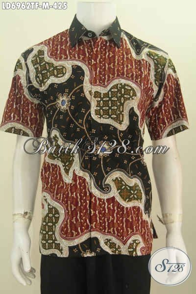 Hem Batik Cowok Lengan Pendek Premium, Baju Batik Mewah Full Furing Motif Bagus Proses Tulis Harga 400 Ribuan [LD6962TF-M]