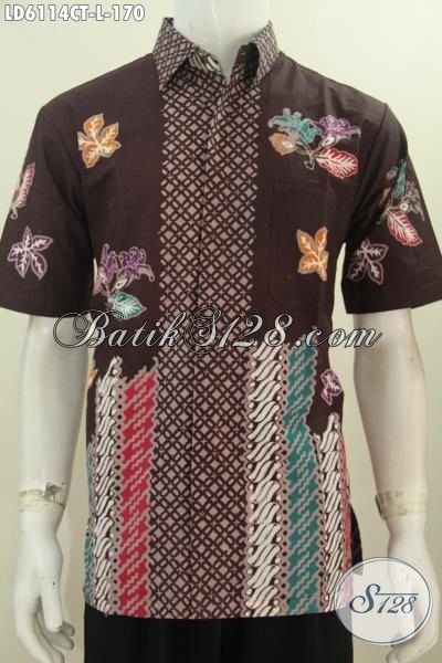Hem Batik Cowok Warna Coklat Model Lengan Pendek, Busana Batik Trendy Buatan Solo Modis Untuk Santai Dan Pesta [LD6114CT-L]