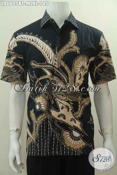 Hem Batik Elegan Dasar Hitam Motif Keren Proses Kombinasi Tulis, Pakaian Batik Fashion Buatan Solo Untuk Yang Muda Dan Dewasa Tampil Lebih Gaya [LD6605BT-M , L , XL]