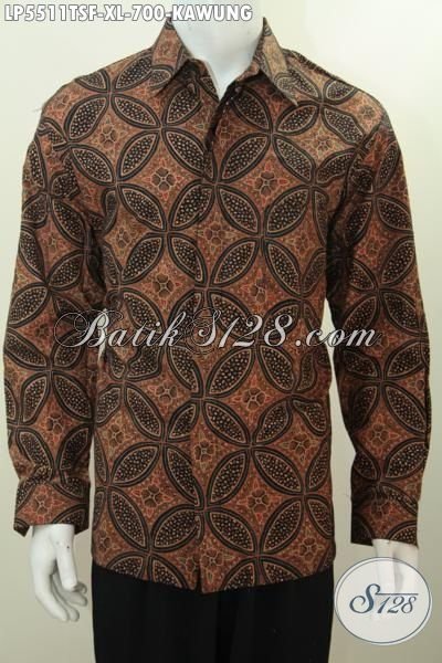 Hem Batik Elegan Mewah Model Lengan Panjang Full Furing, Busana Batik Berkelas Halus Motif Kawung Mewah Proses Tulis Soga Harga 700 Ribu [LP5511TSF-XL]