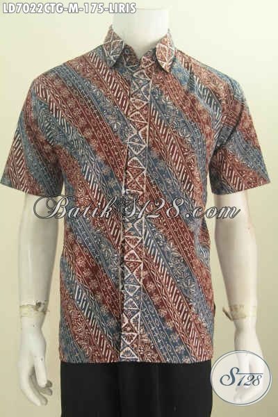 Hem Batik Elegan Untuk Baju Kerja, Busana Batik Modis Untuk Hangout, Berbahan Halus Model Lengan Pendek Motif Liris Proses Cap Tulis Gradasi [LD7022CTG-M]