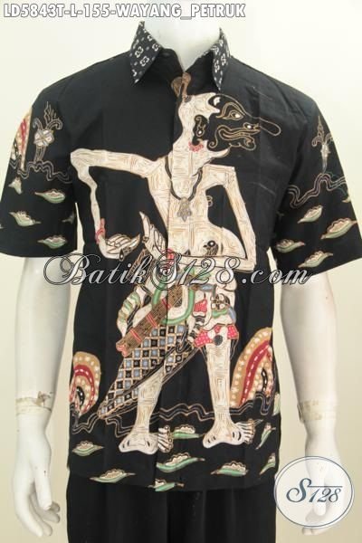Hem Batik Elegan Warna Hitam, Busana Batik Wayang Motif Petruk Baebahan Halus Proses Tulis Model Lengan Pendek Daleman Tidak Pakai Furing [LD5843T-L]