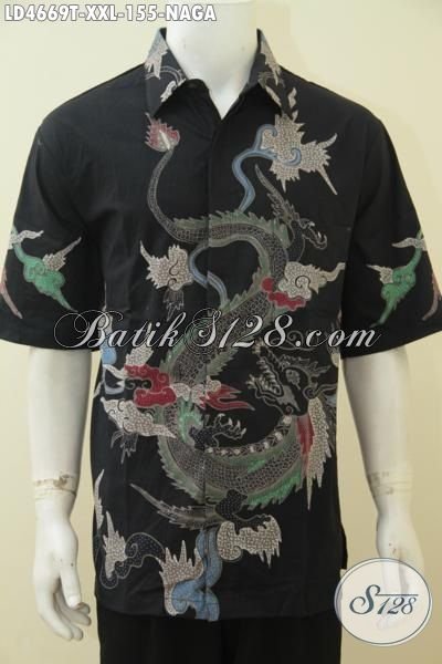 Hem Batik Gaul Buat Pria Berbadan Gemuk, Baju Batik 3L Modis Dengan Motif Naga Proses Tulis Bikin Penampilan Terlihat Gagah Dan Tampan [LD4669T-XXL]
