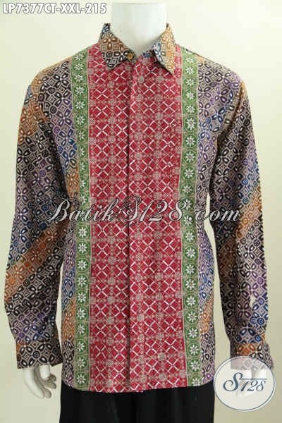 Hem Batik Halus Lengan Panjang Ukuran 3L, Pakaian Batik Pria Gemuk Motif Kombinasi Asli Buatan Solo Proses Cap Tulis, Menunjang Penampilan Lebih Istimewa [LP7377CT-XXL]