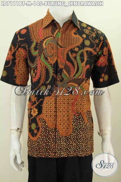 Hem Batik Halus Lengan Pendek Keren Dengan Motif Burung Cendrawasih, Pakaian Batik Pria Muda Proses Kombinasi Tulis, Cocok Buat Hangout [LD7111BT-M]