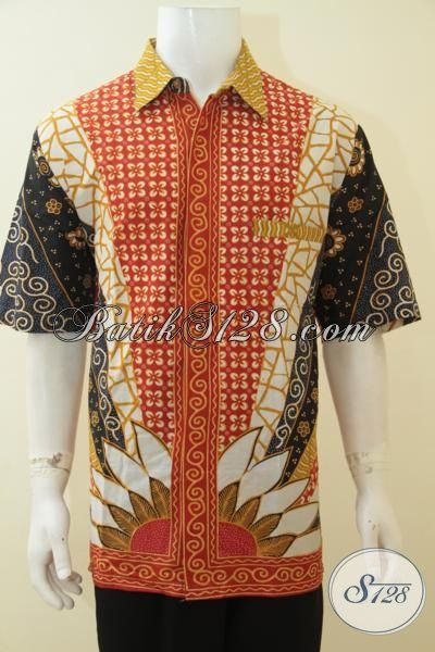 Hem Batik Halus Produk Solo, Pakaian Batik Kwalitas Premium Size Jumbo, Baju Batik Kerja Dan Pesta Proses Kombinasi Tulis Model Lengan Pendek [LD4075BT-XXXL]