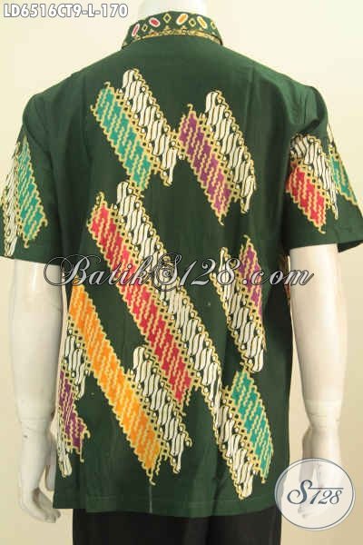 Hem Batik Hijau Motif Kombinasi, Pakaian Batik Modern Lengan Pendek Kwalitas Bagus Proses Cap Tulis Untuk Tampil Lebih Gagah [LD6516CT-L]