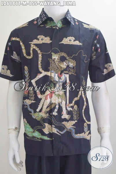 Hem Batik Hitam Elegan Motif Wayang Bima, Pakaian Batik Lengan Pendek Pria Bahan Halus Proses Tulis Harga 155K [LD6181T-M]
