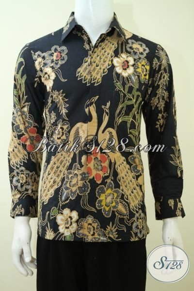 Hem Batik Hitam Kombinasi Tulis Mewah Dengan Motif Burung Merak, Pakaian Batik Kwalitas Bagus Pas Buat Rapat Dan Acara Resmi [LP3369BT-S]